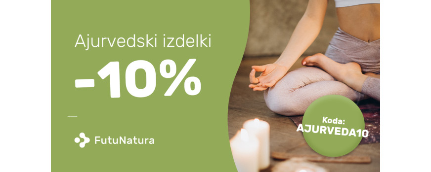 Ajurveda je sistem tradicionalne indijske medicine, ki telesne spremembe obravnava celostno. Izkoristite 10% popust na vse ajurvedske izdelke iz naše ponudbe.