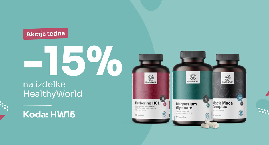 Priskrbite si zalogo odličnih izdelkov blagovne znamke HealthyWorld, ki so ta teden znižani za 15%.