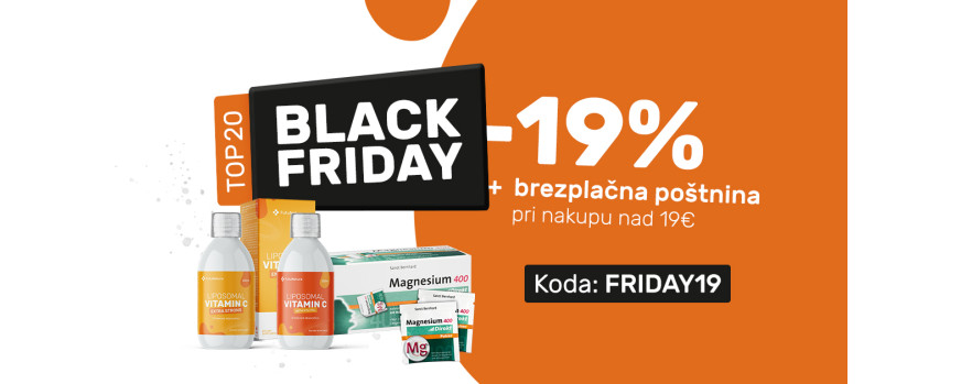 Naša ekipa je za vas izbrala TOP 20 Black Friday izdelkov, na katere vam podarjamo 19% popusta. Za nakupe v vrednosti nad 19 € prejmete tudi brezplačno poštnino!