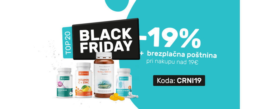 TOP izdelki po TOP cenah! Izkoristite 19% popust na TOP 20 Black Friday izdelkov. Za VSE nakupe nad 19 € pa vam stroške poštnine krijemo mi!